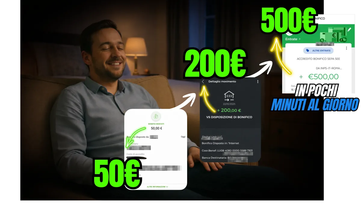 • Ricevi entrate da 2.000€ al mese senza rischiare nulla, sfruttando un sistema collaudato e certificato.